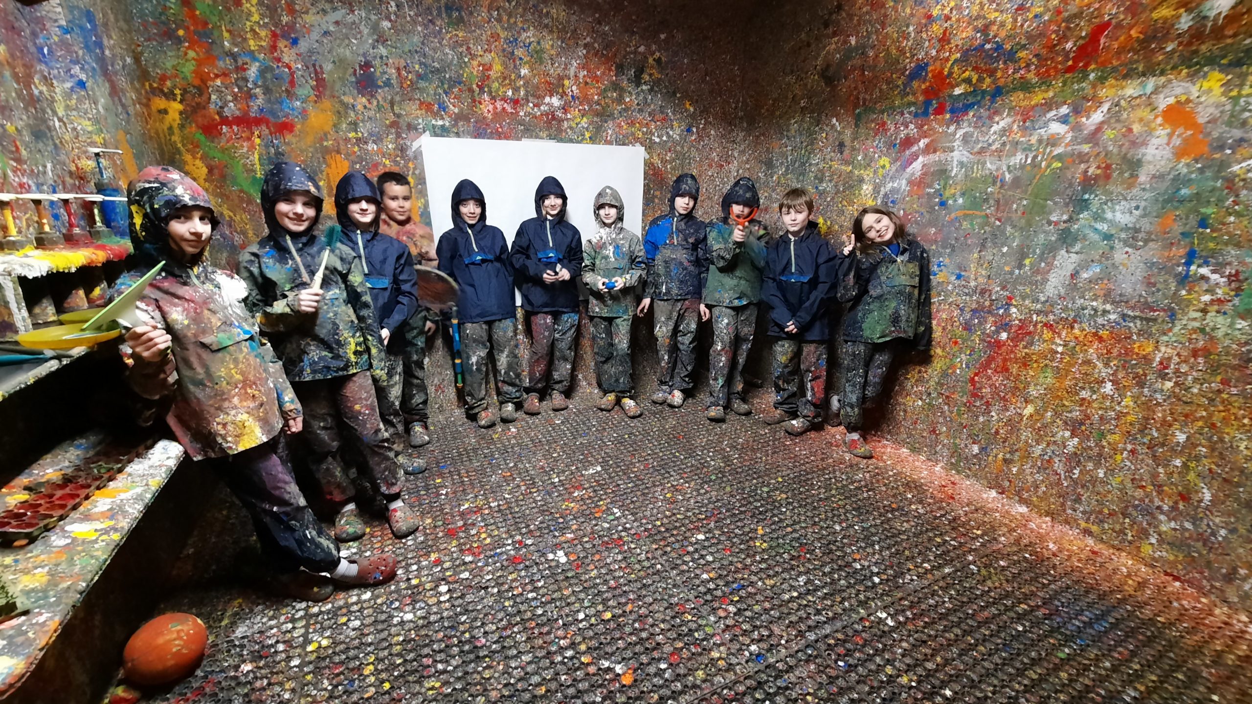 Tous les moyens sont permis ! Libérer votre âme d’enfant et défoulez-vous sur une grande toile munis d’ustensiles de cuisine, brosse à toilette, fronde, pistolet à eau, gants de boxe, ballons etc.